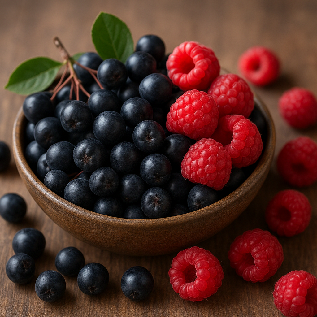 Aronia i malina to prawdziwe skarbnice antyoksydantów, które zwalczają wolne rodniki, opóźniając procesy starzenia się komórek. W malinach dominują polifenole oraz kwas elagowy, natomiast aronia zawiera dużą ilość flawonoidów i mikroelementów takich jak żelazo czy magnez. Dzięki temu mieszanka obu owoców wspiera układ krążenia, wzmacnia naczynia krwionośne i zwiększa odporność organizmu.