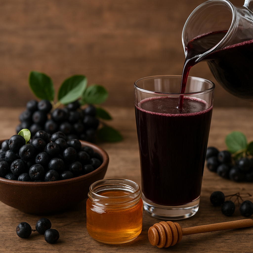Synergia aronii i miodu sprawia, że napój działa wspomagająco przy infekcjach dróg oddechowych, a także świetnie nadaje się do regeneracji po wysiłku fizycznym.